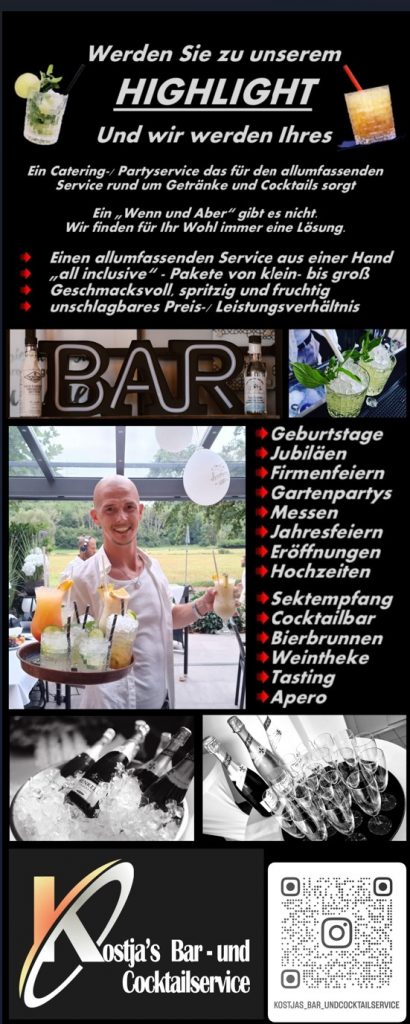 Hochzeit Firmenfeier Geburtstag oder Gala Cocktails Wein, Sekt & Bier vom Feinsten Erfrischende Softdrinks Wir kümmern uns um alles